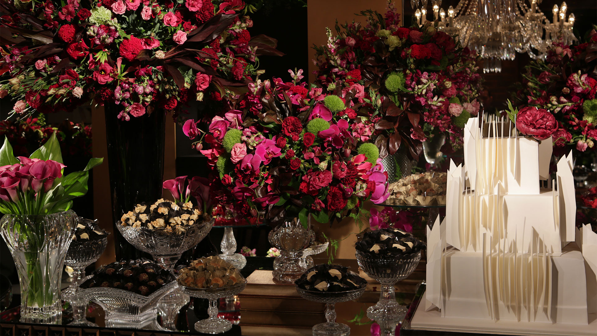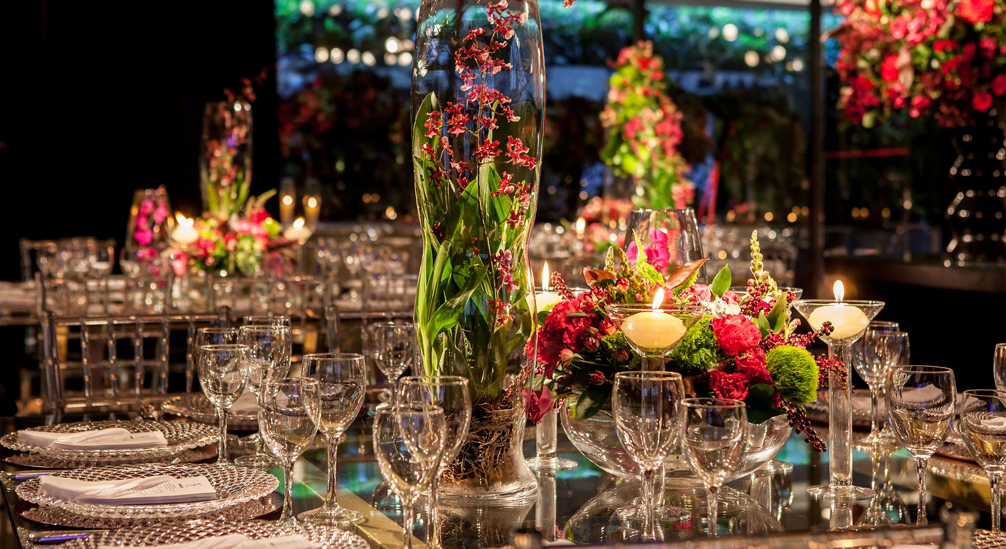 Branquíssimas ou cheias de cores, as flores são fundamentais na decoração de um evento. Alegram o ambiente e conseguem compor a identidade visual da festa de forma única e especial. Graças a sua diversidade, as flores também trazem frescor e equilíbrio à cerimônia, emocionando convidados e familiares. Afinal, seu propósito é um SÓ: dizer aquilo que não pode ser simplesmente dito, e fazê-lo com beleza e graça. No livro Victorian Flower Dictionary, a autora Mandy Kirby vai além: “Achamos maravilhoso e extremamente romântico transmitir uma mensagem, assim sem palavras, através do simples gesto de entregar uma flor a alguém!” Não é por acaso que o hábito de decorar as festas de casamento com grandes arranjos e flores não tem nada de recente! Na Grécia antiga, flores eram entregues como forma de recompensa aos guerreiros e homens que desempenhavam bem uma tarefa, ou em desejo de boa sorte quando uma criança nascia. Por causa do perfume exótico e delicioso que exalavam, as flores passaram não só a fazer parte das coroas dos nobres em eventos importantes, como também a enfeitar os recintos onde eram feitas as cerimônias de casamento, como maneira de cortejar a fertilidade da noiva e a prosperidade da união que se formava. De lá pra cá, as flores se consagraram ícones da delicadeza e do afeto! E é preciso criatividade e arquitetura para montar arranjos impressionantes e traduzir a identidade dos anfitriões em cada espaço. Se a decoração for em um ambiente externo ou com uma temática mais natural, madeiras e flores formam uma dupla perfeita. Aproveite materiais como pallets, caixotes de feira e barris de bebidas e combine-os com flores coloridas. As flores podem dar um toque extra nas garrafas e fazer com que elas se tornem belíssimos elementos de uma festa. As cortinas de flores também dão um efeito lindo. Elas podem ser feitas com flores naturais ou artificiais e misturadas a outros elementos ganham maior visibilidade. Dê significado a ramalhetes, buquês, arranjos e democratize o ato de florificar!